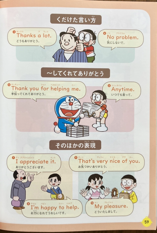 全ページに、ドラえもんのキャラクターがイラストで登場します。