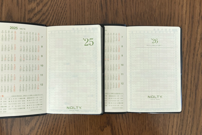 結果、通常版で十分に満足なので、2026年の手帳も「NOLTY 能率手帳1」に決めました。