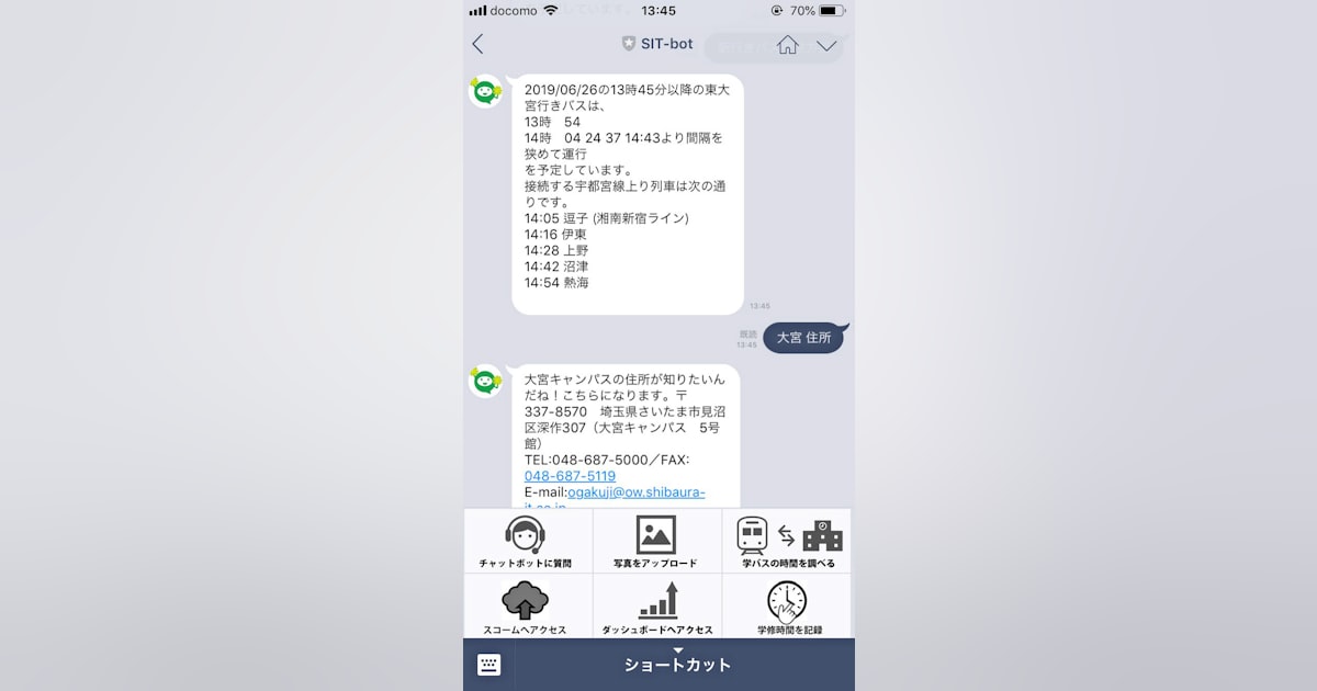 「授業の履修方法」「奨学金を受けたい」「大学窓口が開いている時間」「食堂の営業時間」といった質問に、AIが答えてくれるそうです。